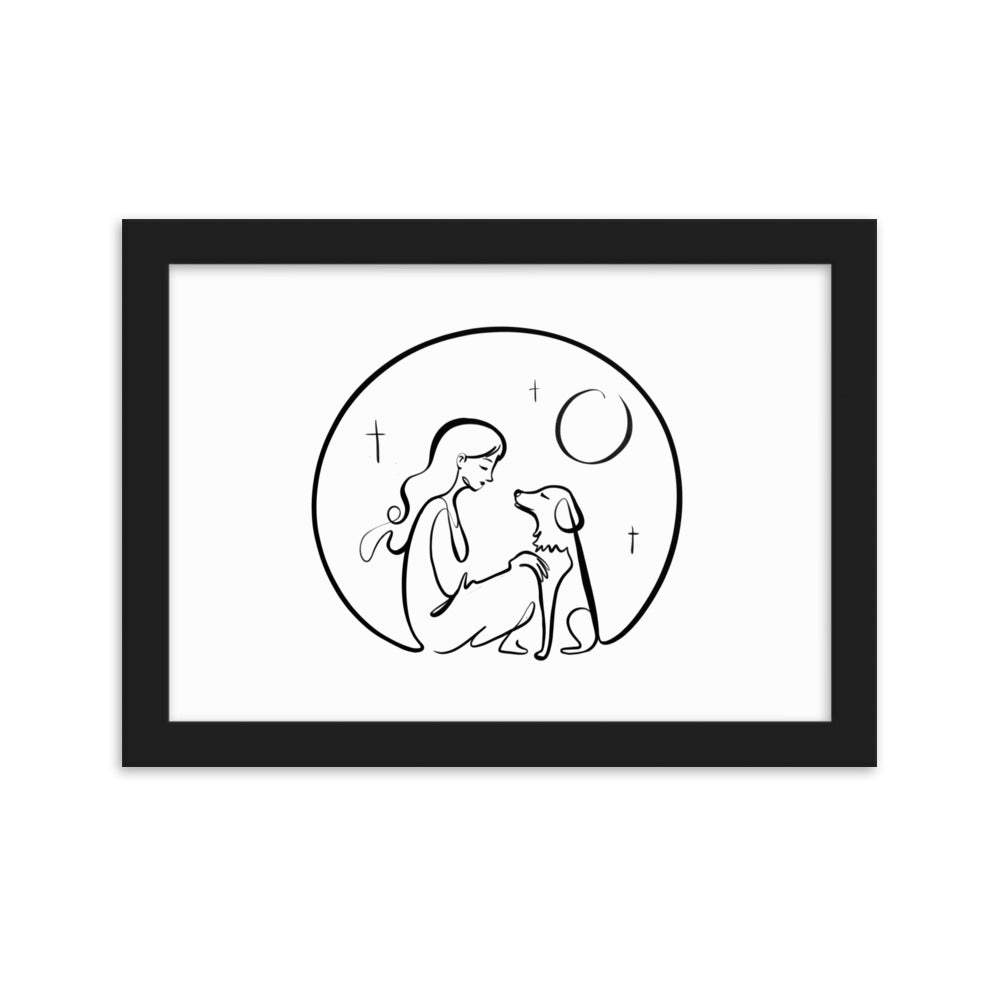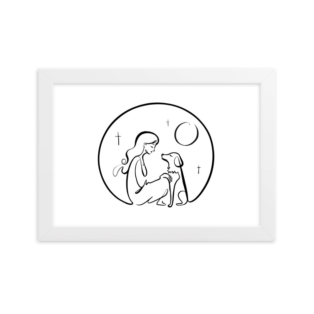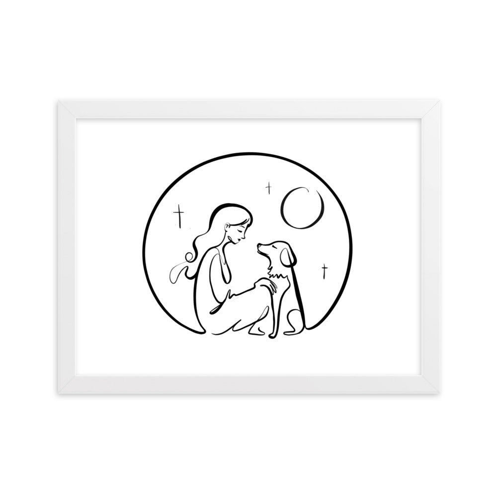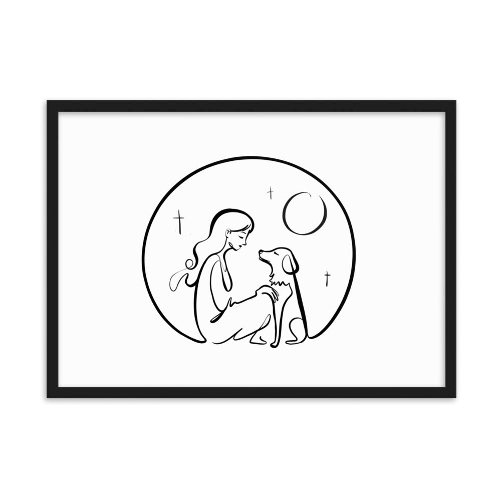 A Girl and Her Dog and the Whole Universe - Framed Art Print