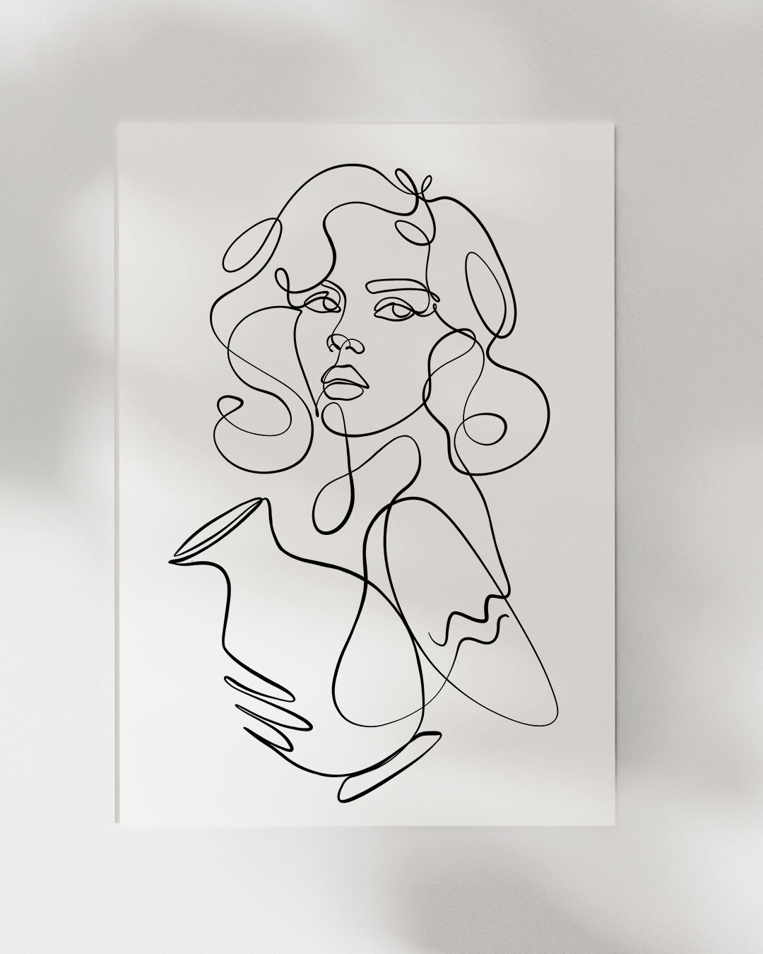 Dive into the innovative and free-spirited nature of Aquarius with this one-line drawing from Hanna Lee Tidd's Zodiac Collection.