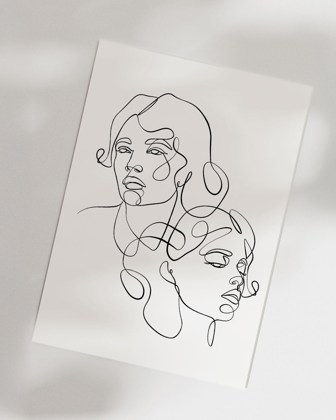 Embrace the duality and curiosity of Gemini with this one-line drawing from Hanna Lee Tidd's Zodiac Collection.