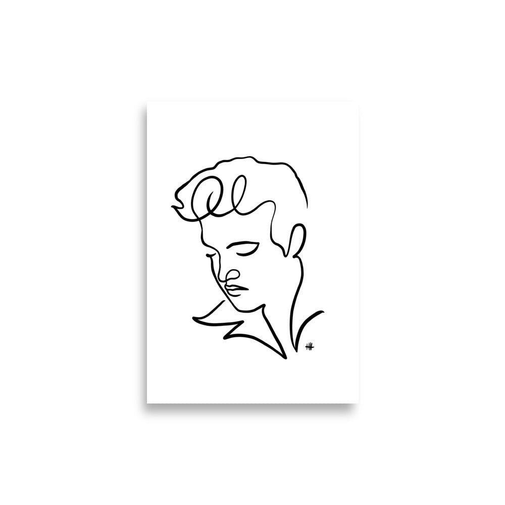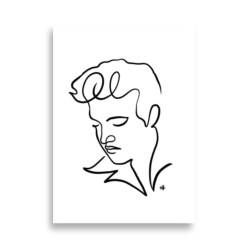 "Elvis" is a striking tribute to the King of Rock 'n' Roll, created using intricate line work. This detailed artwork captures the charisma and iconic presence of Elvis Presley, celebrating his timeless appeal in a modern, minimalist style.