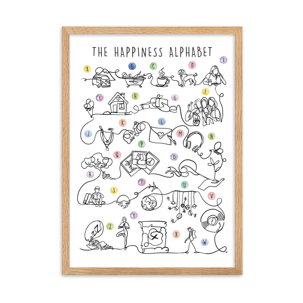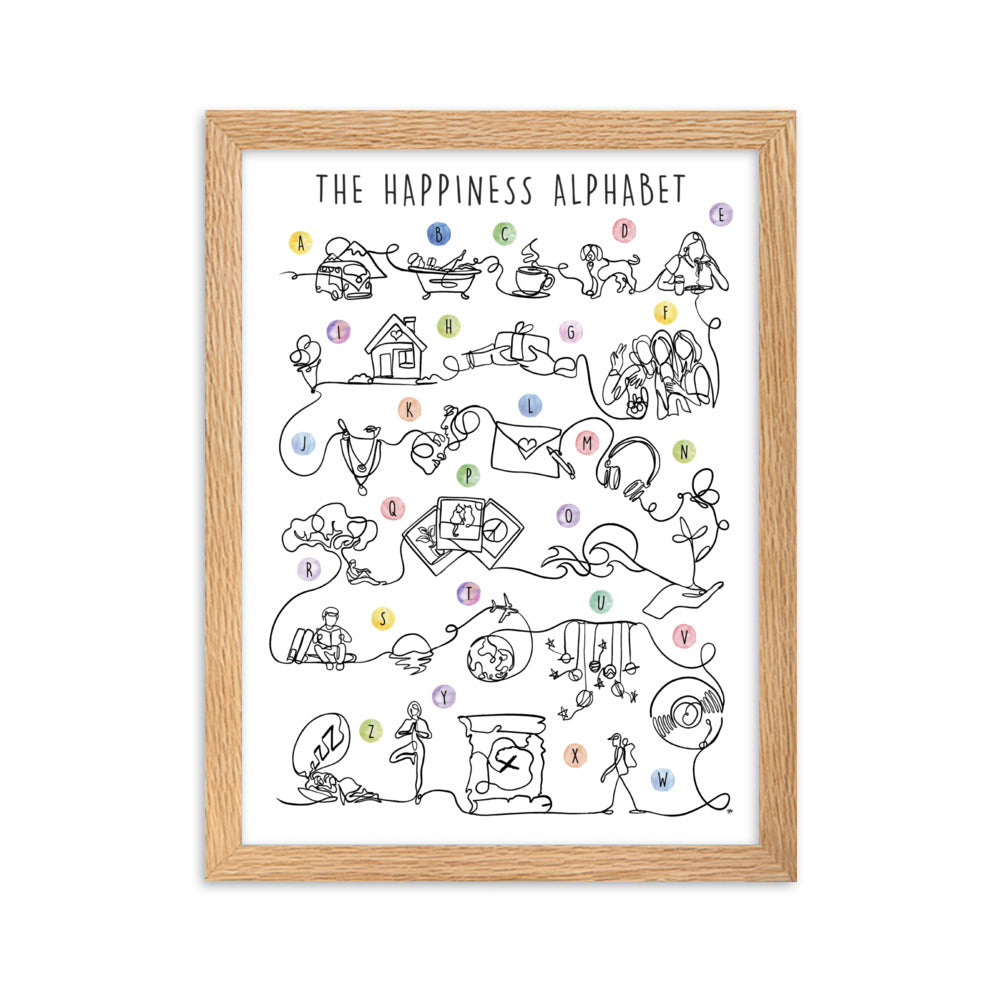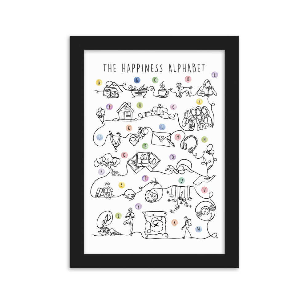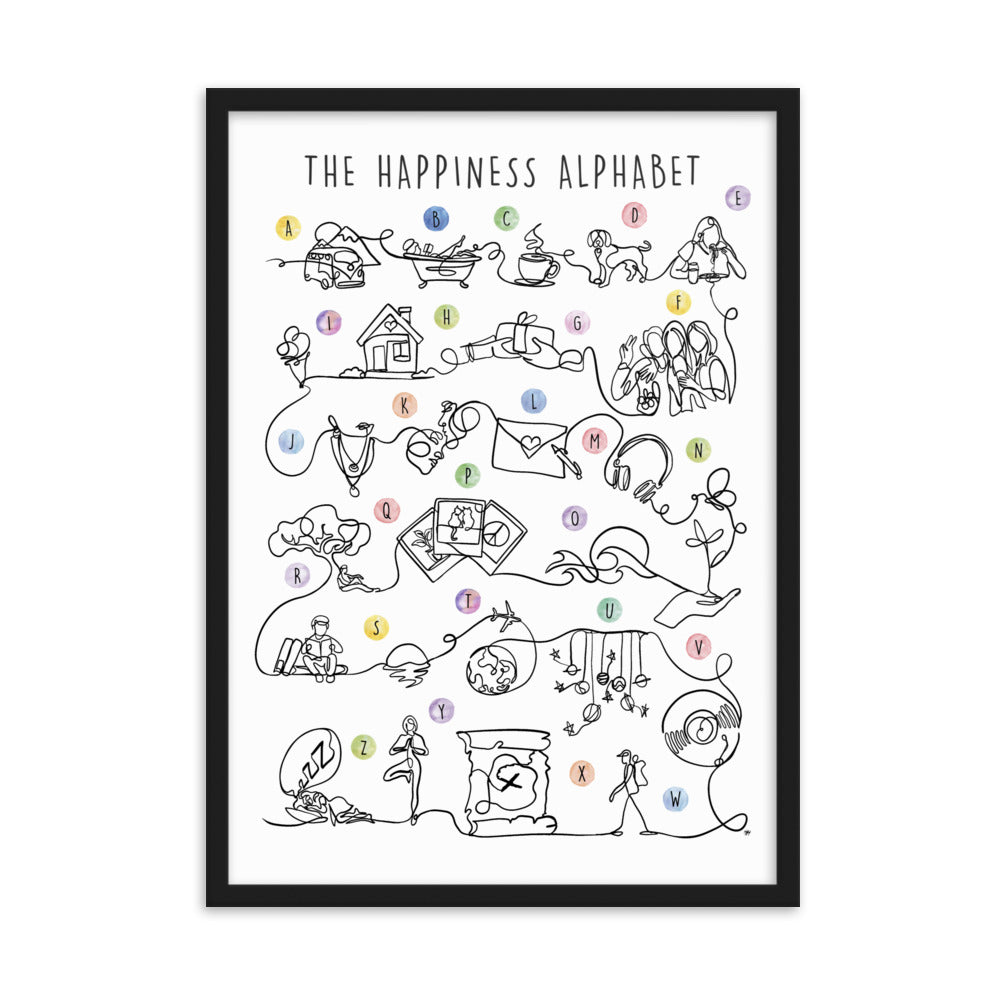 The Happiness Alphabet framed art print by Hanna Lee Tidd