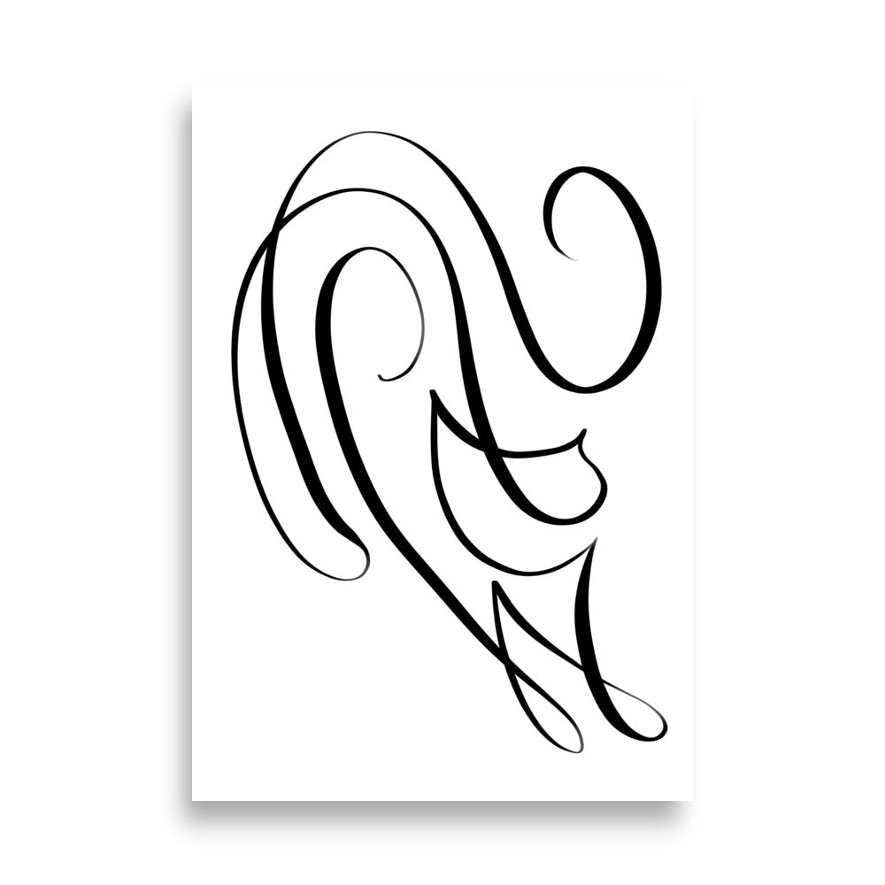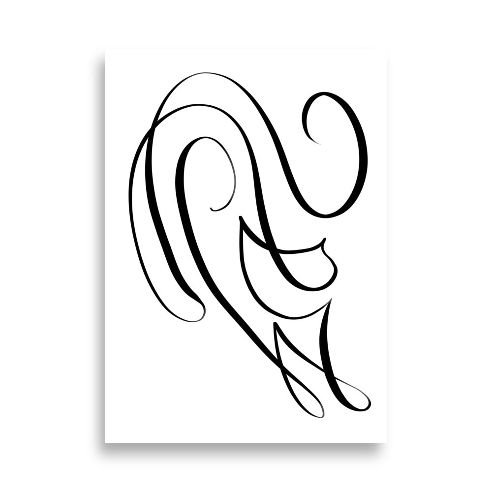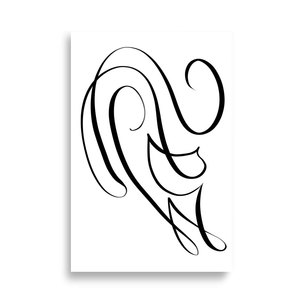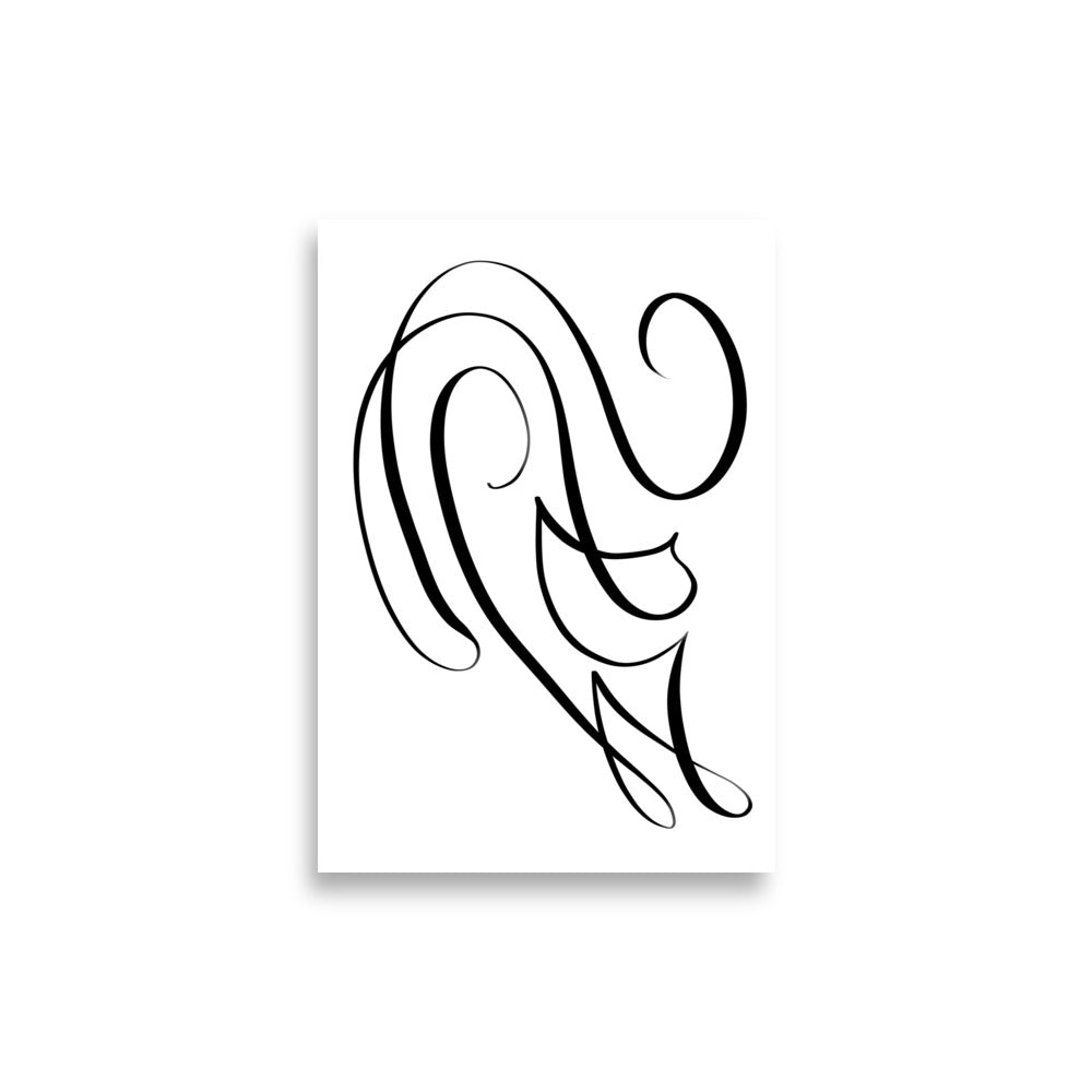 Simple, minimalist one continuous line drawing of a black cat. The reason he's called The Jazz Cat is because he's just jumped off a piano somewhere wonderful. Or alternatively perhaps I had originally meant to paint a treble clef and he came out instead.