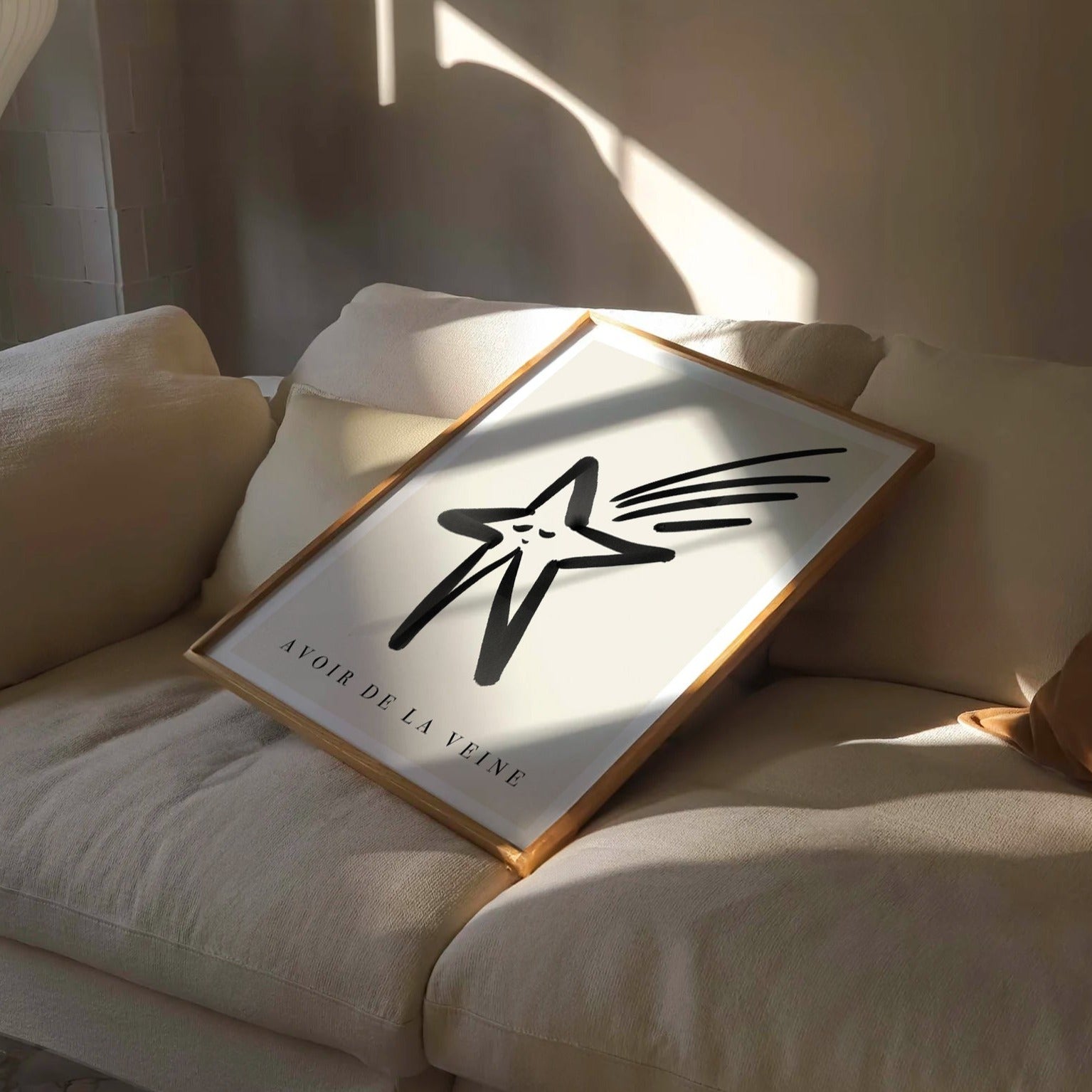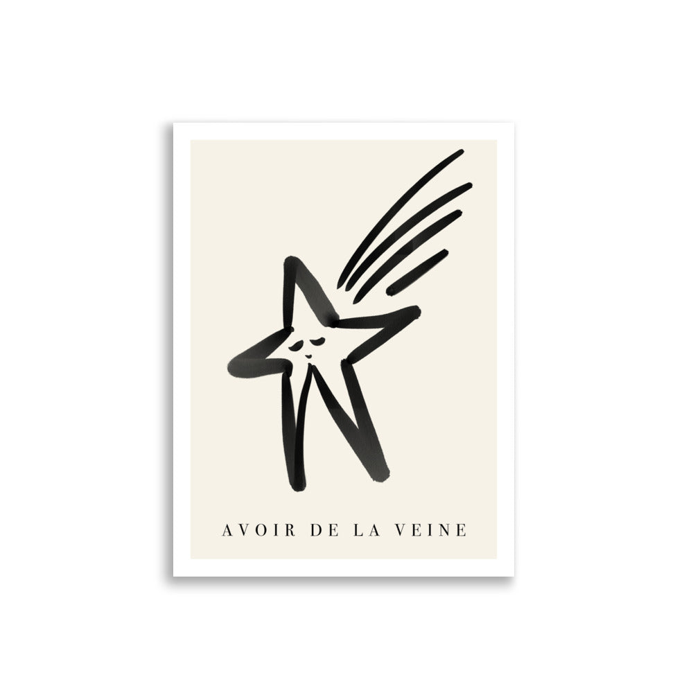 Simple minimalist painting of a lucky shooting star, from the Avoir De La Veine ("Be Lucky") collection. This collection is all about manifesting luck and attracting abundance into the home. Because a shooting star was a tangible symbol of the gods looking down at that moment, it was believed that a wish or request made upon seeing the star was more likely to be heard and granted. Be lucky my friends.