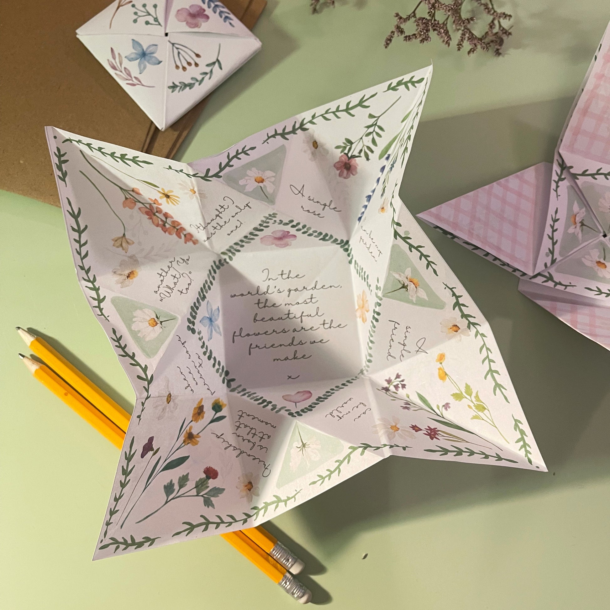 Victorian Puzzle Purses, also known as love tokens, hold a special place in the world of romantic gestures. These intricately folded paper purses unfold to reveal a secret message, and were originally exchanged by lovers during the 19th century as a symbol of affection and devotion. They also make charming invitations and notes to friends.